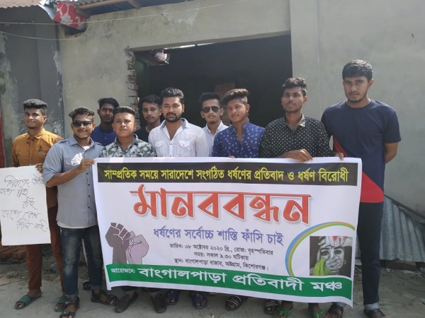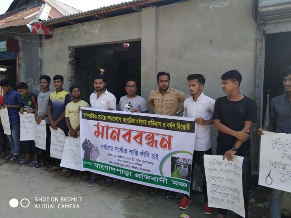 ধর্ষণের বিরুদ্ধে বাঙ্গালপাড়া প্রতিবাদী মঞ্চের মানববন্ধন