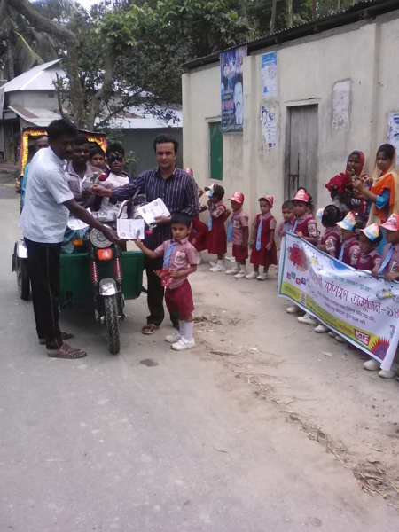 শনিবার দুপুরে উপজেলার পূর্ব অষ্টগ্রাম ইউনিয়নের প্রধান প্রধান সড়কে শিক্ষার্থী ও শিক্ষকরা বাইক ও গাড়ি থামিয়ে ড্রাইভার দের হাতে ফুল ও লিফলেট বিতরণ করে।