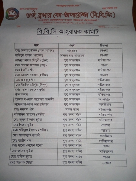 কিশোরগঞ্জের অষ্টগ্রাম উপজেলার দেওঘর ইউনিয়নে ভাই ব্রাদার কো-অপারেশন (বিবিসি) গ্রুপের আহবায়ক কমিটি গঠন করা হয়েছে।